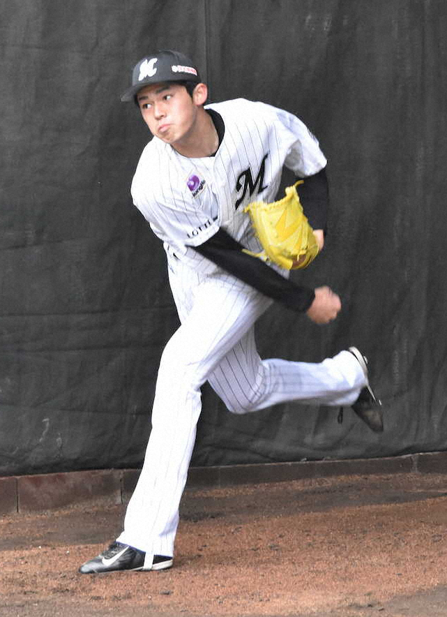 ブルペン投球を行うロッテのドラフト1位・佐々木朗