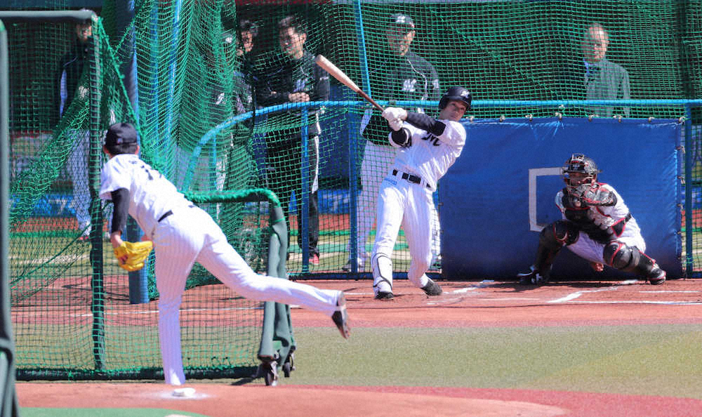 ドラフト1位右腕にとって初のフリー打撃登板。相手を務めた同5位の福田光だったが、打席に入る前の練習球で158キロを見せられ「ちょっと怖いな、当てられたら嫌だな、と…。真っすぐだけだけど、バットに当たるかなと思った」