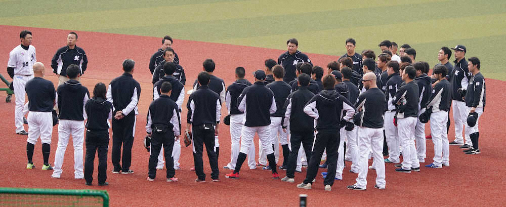 <ロッテ練習>28日からの一軍の全体練習を中止することになったロッテナイン(撮影・長久保 豊)