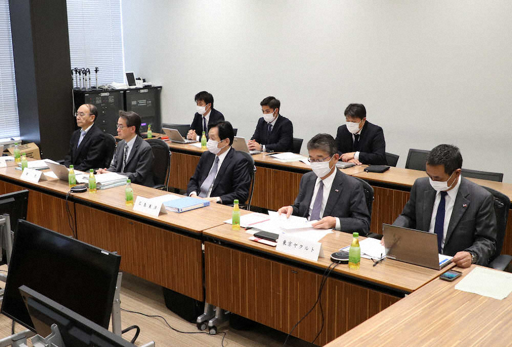 セ・リーグ理事会に臨むヤクルト、広島、巨人の理事たち(撮影・小海途 良幹)