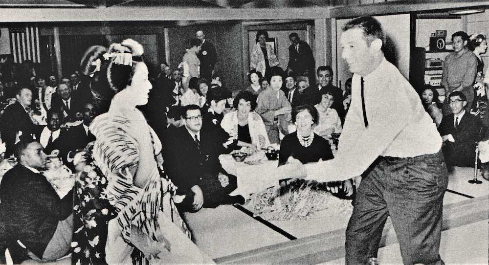 宴席の模様を伝える写真にケーラインが舞妓(まいこ)とおどける様子がある。ジャンケンをしているようだ。当時のスポニチ記事に「野球拳に興じた」とある。