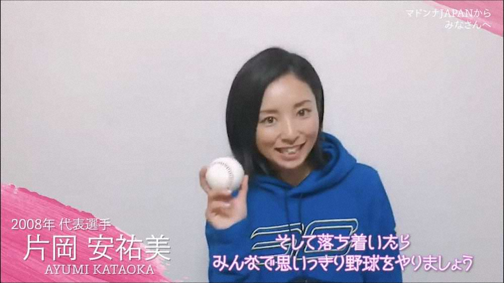 女子代表は現在W杯6連覇中で世界ランキング1位を誇る。全日本女子野球連盟が呼びかけたところ2日間で約70人が賛同。企画が実現した。04年第1回大会から18年第8回大会まで出場した選手がそれぞれの自宅などで動画を撮影し、キャッチボールでリレーしている。W杯3大会連続MVPの里綾実や川端友紀、08年代表で現茨城ゴールデンゴールズ監督の片岡安祐美のほか引退した選手らも出演し「STAY HOME」「手洗い、うがいをしっかりしよう」などと呼びかけた。
