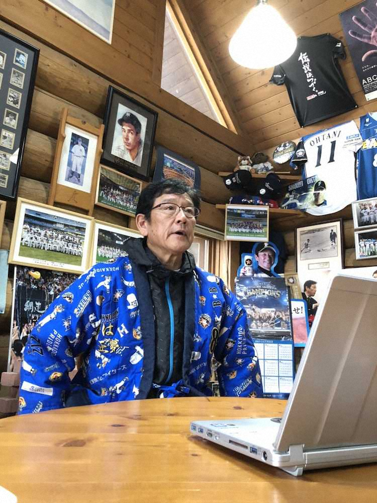 「栗の樹ファーム」内の自室でオンライン取材に応じた栗山監督