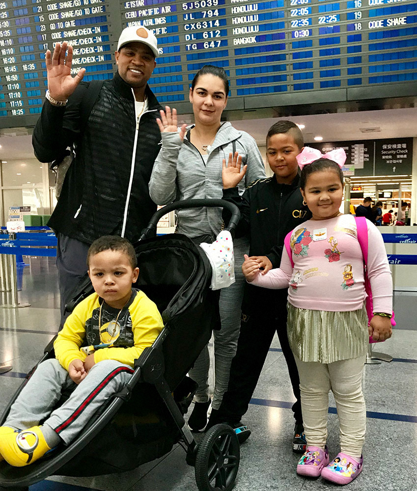 2018年10月、家族とともに離日したビシエド(左)