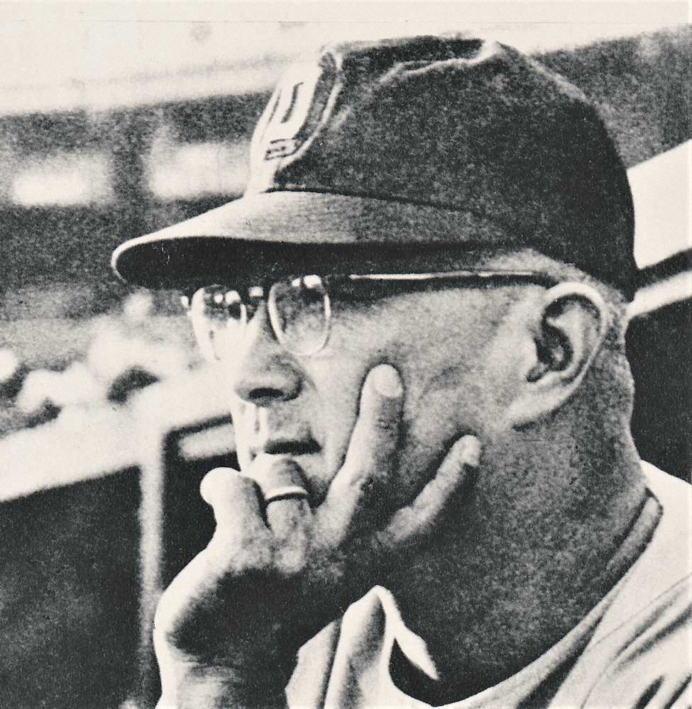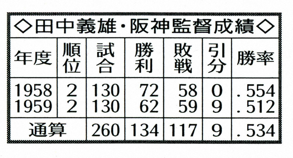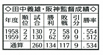 「カイザー」田中義雄監督=阪神球団発行『タイガース30年史』より=。現役時代からメガネをかけていた。