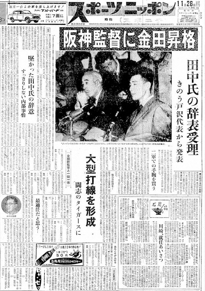 1961年シーズン中、金田正泰監督から引き継いだ藤本定義監督(中央)の話を聞く選手たち=阪神球団発行『タイガース30年史』より= 【内田雅也の猛虎監督列伝~<11>第11代・金田正泰】「排斥運動」の自業… ギャラリーで見る この記事のフォト 2020年04月30日の画像一覧 もっと見る 2020年04月30日の画像をもっと見る
