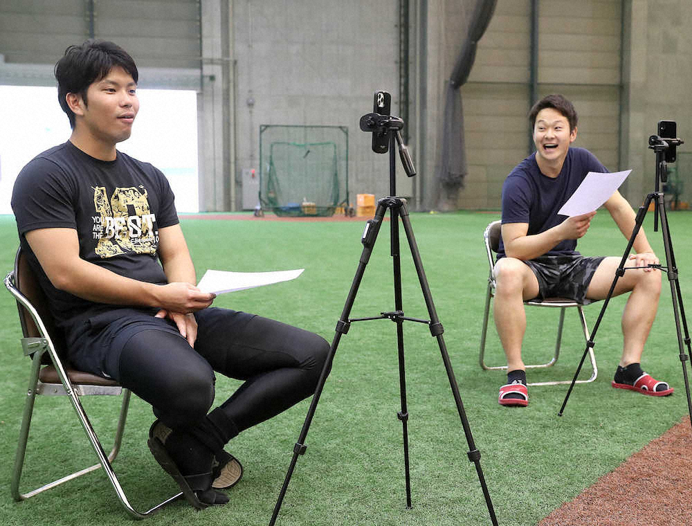 巨人・大城卓三捕手(27)と中川皓太投手(26)が2日、球団公式インスタライブに登場。ともに東海大出身で寮では同部屋だったという1学年先輩と後輩が約30分間、1万人を超える視聴者の前でトークを展開した。