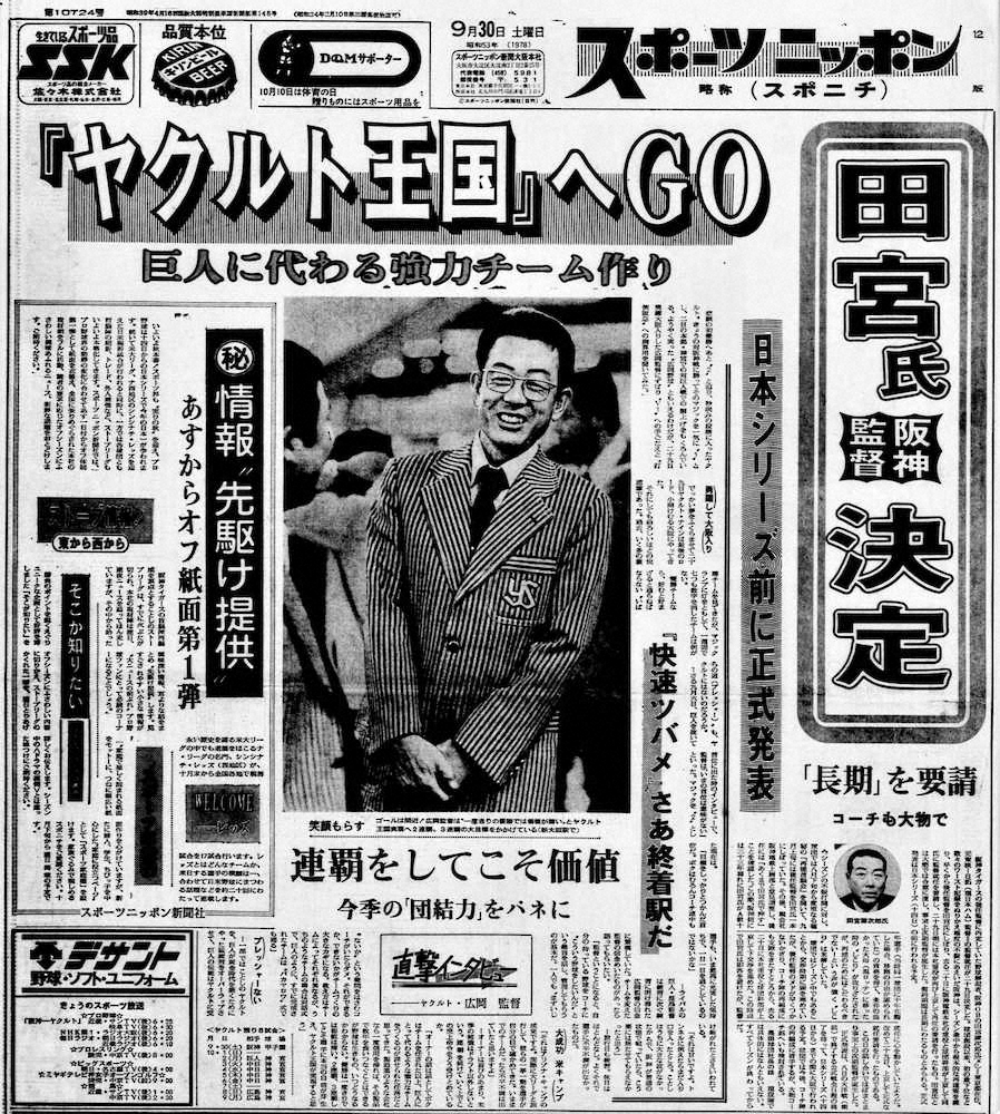 「阪神・一枝監督」の球団案を伝える1996年9月10日付のスポニチ本紙1面 Photo by スポニチ 【内田雅也の猛虎監督列伝<番外>幻の阪神監督】阪神監督になれなかった―… ギャラリーで見る この記事のフォト 2020年05月07日の画像一覧 もっと見る 2020年05月07日の画像をもっと見る
