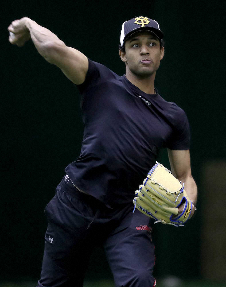 巨人の新外国人、エンジェル・サンチェス投手(30)が10日、川崎市のジャイアンツ球場で個人調整を行い、ブルペンで立った捕手に34球を投げ込んだ。