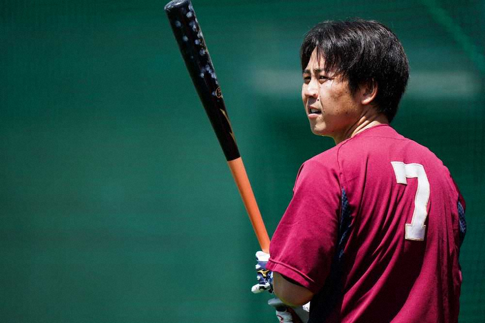 楽天生命パークで打撃練習を行った楽天・鈴木大