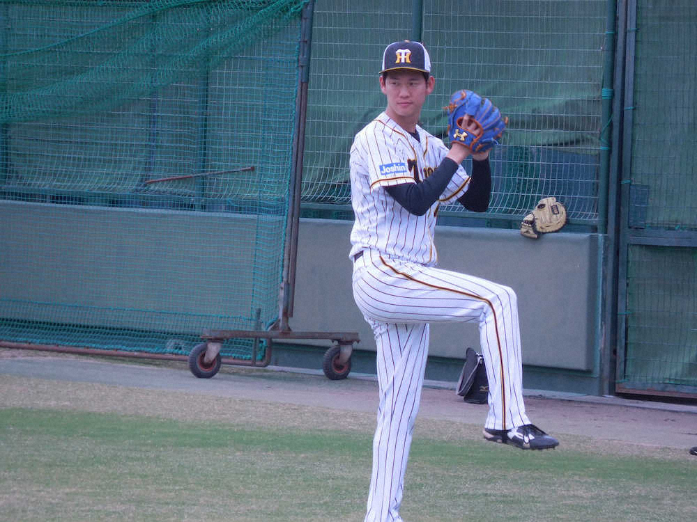 この日は鳴尾浜球場のブルペンで変化球を交え44球。「順調に調整できている」。先輩の言葉も力にして、開幕への準備を進める。(長谷川 凡記)