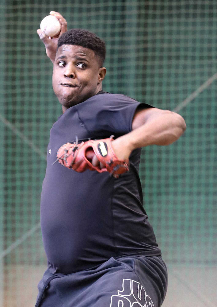 巨人のルビー・デラロサ投手(31)が19日、東京ドームで行われた1軍練習でブルペン入りし、座った捕手に30球を投げ込んだ。