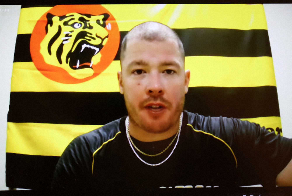 阪神・ボーア 「タイガースのグッズを身にまとって応援して頂けたら」テレビ越しで観戦の虎党にメッセージ