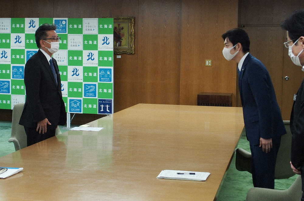 日本ハム・川村球団社長 道知事表敬訪問 開幕後の感染拡大防止策の取り組み説明