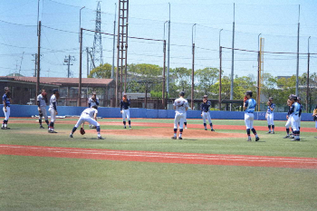 ウェブ会議システム「Zoom」でのミーティングやLINEで情報共有しながら自粛期間を過ごしてきた。帰省していた県外出身の寮生が戻り、約2カ月ぶりに全員がそろった。無音のアップから始まり、打撃練習でも黙々と打ち込む。締めのノック前、マウンドへ集まった際はグラブで口を覆った。感染防止に細心の注意を払った3時間。それでもナインは思い切り白球を追い、バットを振った。