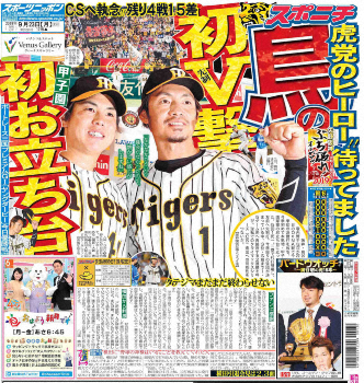 まだ、記憶に新しい。9カ月前のスポニチを開く……までもなく、偉業は翌23日付スポニチの1面で大々的に報じられていた。