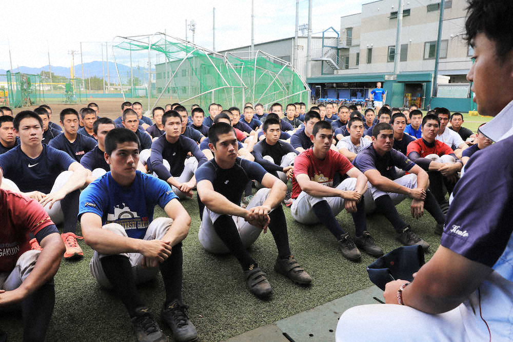 昨秋の関東大会で準優勝した山梨学院ナインは午後4時すぎ、吉田健人部長から報告を受けた。
