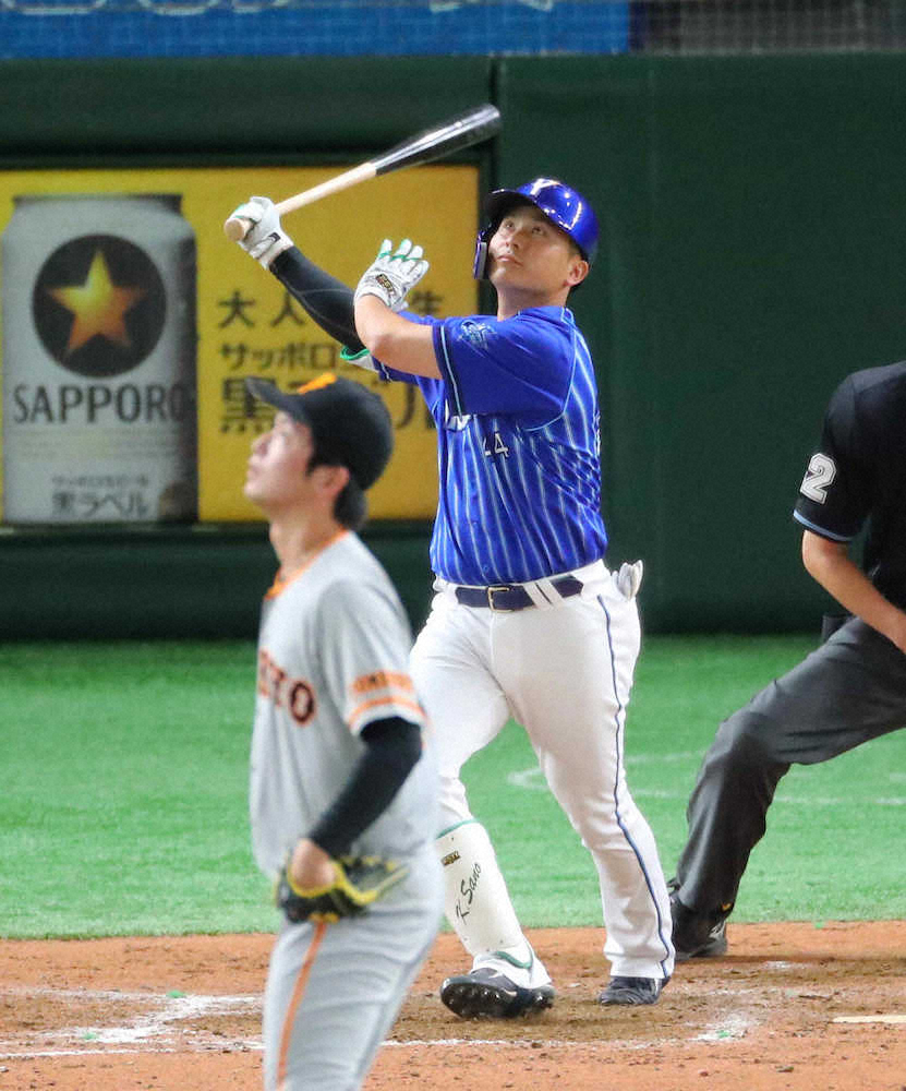 新4番が一気に調子を上げてきた。DeNA・佐野が4回に2戦連発のソロ。沼田の直球を右翼席中段まで運び「強いスイングができた」と胸を張った。