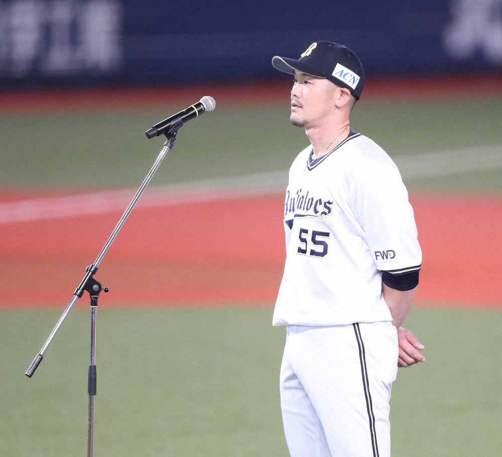 マウンド手前で並び立ち、リレー形式でスピーチ。まずは、T―岡田が「プロ野球の開幕を待ち続けてくださったみなさん、ありがとうございます。きょう、みなさんの前にプロ野球が帰ってきました。私たちは今、野球ができる喜びを体中で感じています」とあいさつ。続けて、森原が「この開幕を迎えるために、医療従事者の方々をはじめ、たくさんの人々に感謝し、今日を迎えます。本当にありがとうございます」と感謝を述べた。