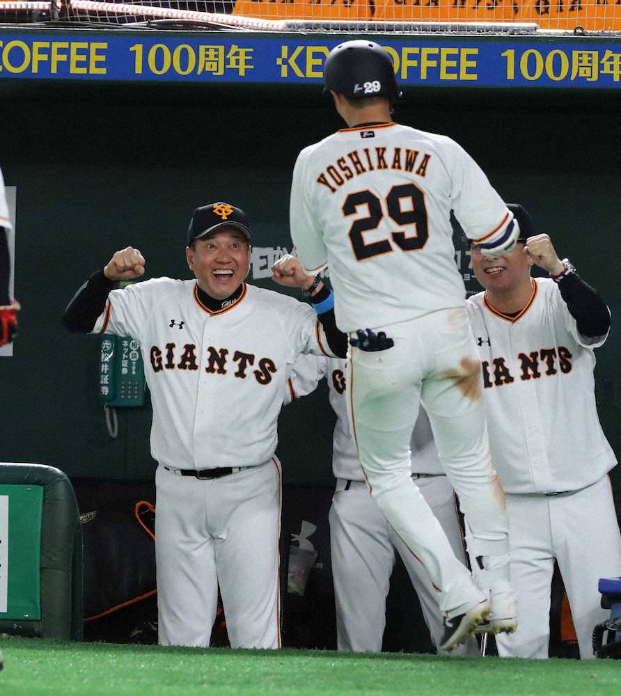 <巨・神>通算6000勝を喜ぶ(左から)今村球団社長、菅野、原監督、坂本(撮影・森沢裕) Photo by スポニチ 巨人 吉川尚弾で史上初の球団通算6000勝 原監督「86年目を迎える重みを… ギャラリーで見る この記事のフォト 2020年06月20日の画像一覧 もっと見る 2020年06月20日の画像をもっと見る