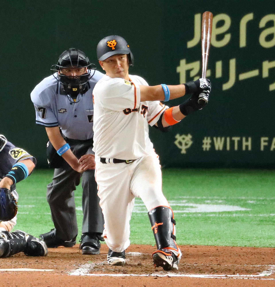 <巨・神>4回、西(左)から二塁打を放つ亀井(撮影・木村 揚輔) Photo by スポニチ 巨人 野手最年長コンビ亀井&中島で1点もぎ取る ギャラリーで見る この記事のフォト 2020年06月20日の画像一覧 もっと見る 2020年06月20日の画像をもっと見る