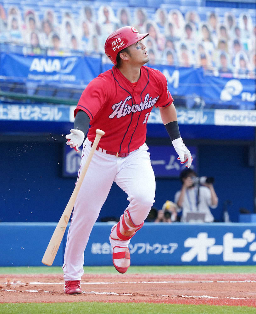 広島・誠也 本人もビックリ今季1号「バットの先でしたが風に助けられました」