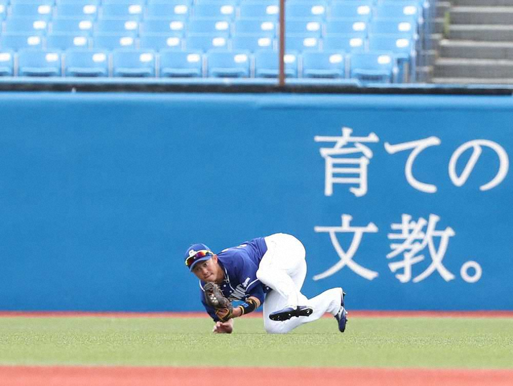 8回裏から福田に代わって左翼の守備に就くと、3点リードの9回2死二塁で真正面に飛んできた塩見の痛烈な打球をグラブをはめた左手を伸ばし、地面すれすれでダイビングキャッチ。最後は一回転しながら、しっかりと捕球をアピールし笑顔を見せた。