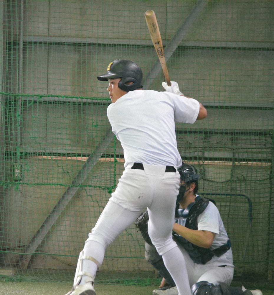 全体練習が再開され、木製バットを手に打撃練習する花咲徳栄の井上
