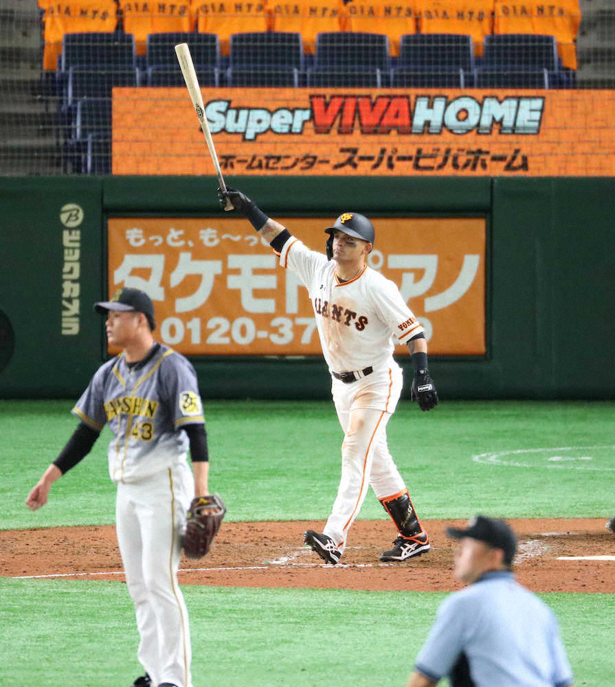 <巨・神>5回、守屋(左)から2戦連発となる2ランを放つパーラ(撮影・木村 揚輔)