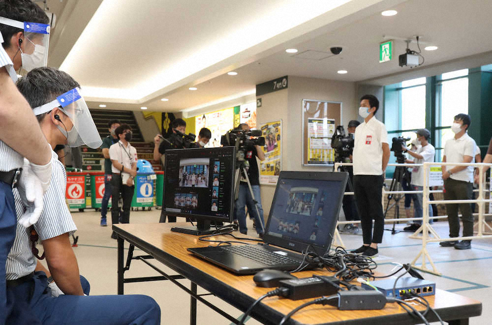 <ウエスタンリーグ 神・オ>入場時に利用するサーモグラフィーのテストも行われた(撮影・北條 貴史)