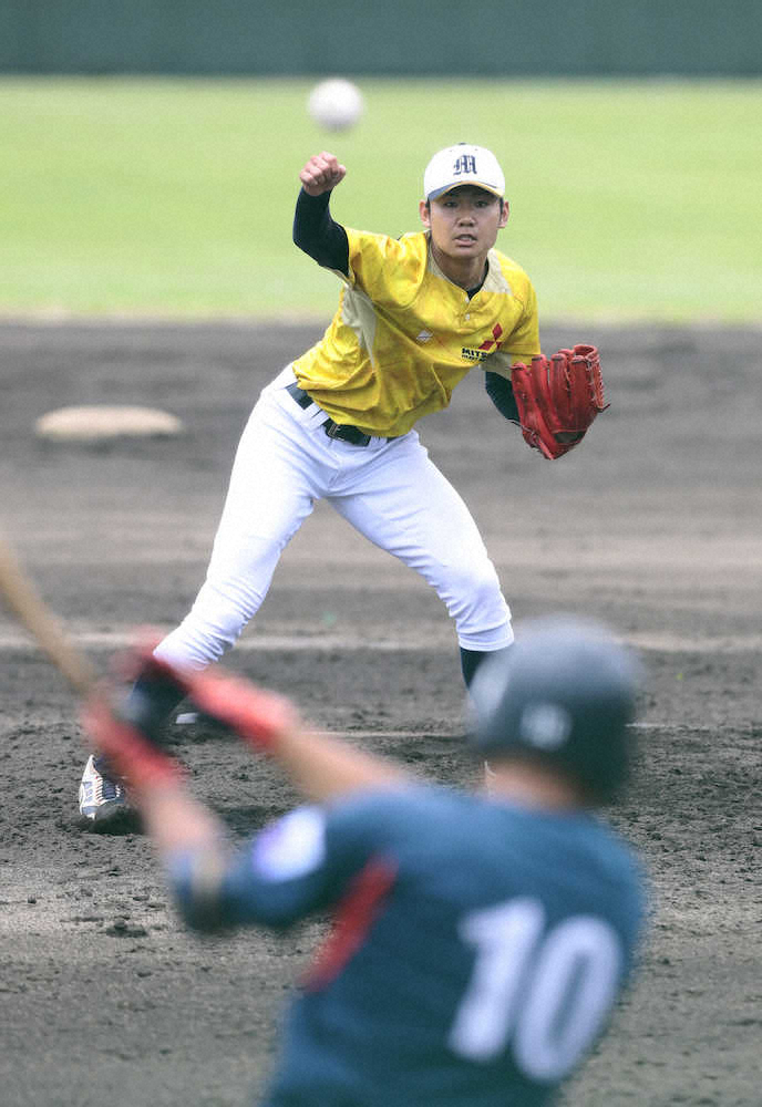 3カ月ぶりの実戦マウンドで、6回から2イニングを完全投球。「試合での対バッターだと力んでバランスを崩してしまった。(仕上がりは)まだ3、4割ぐらい」と反省したが、最速は144キロをマークした。先頭打者をフルカウントから遊ゴロに打ち取って勢いに乗り、続く7回はわずか8球と付け入る隙を与えず。ソフトバンクとともに視察に訪れた巨人の岸敬祐スカウトは「(1メートル85で)上背があるので、球に角度がある」と評価していた。