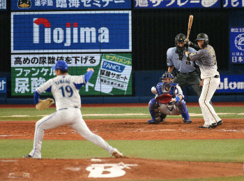 中日の先発・吉見は5回1失点と試合をつくり、勝利投手の権利を持ってマウンドを降りた。