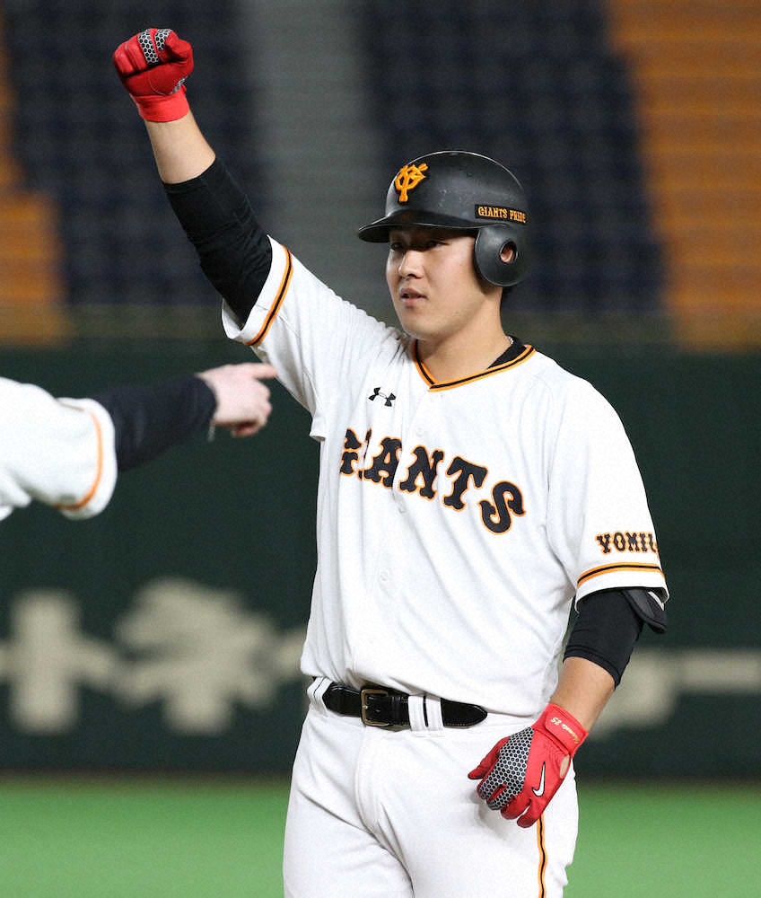 【中畑清 視点】お見事。巨人岡本のテクニックには恐れ入ったよ。1点を追う6回1死一、二塁。外角に流れるカットボールを重心を沈めながら二枚腰で捉え、バットのヘッドを返さない。右翼線へ計ったように打った同点打。狙い打ちのように見えるんだけど、来た球に自然に体が反応してるんだよね。