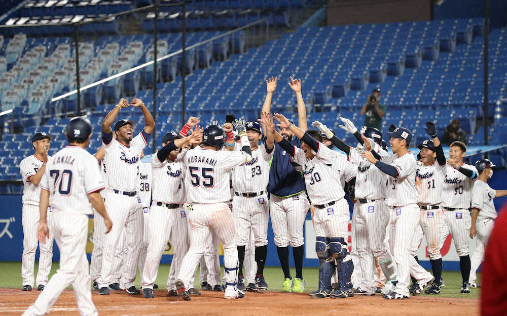 ヤクルトは5―5で迎えた9回無死満塁、4番・村上が自身初となるサヨナラ満塁弾。劇的な勝利で2連勝とし、3位に浮上した。