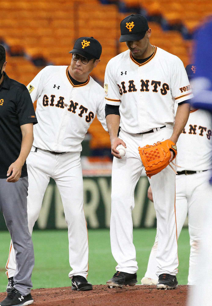 サンチェスは2回、2死走者なしから8番のA・マルティネス、9番の梅津とバッテリーに連打されて一、三塁のピンチを招き、1番・溝脇に右中間へ三塁打されて2点先制を許した。そして3回には先頭の3番・福田に2打席連続安打となる左中間二塁打を許すと、ここでベンチから原辰徳監督(61)が出て交代をコール。バッテリーを組んでいた炭谷銀仁朗捕手(32)も一緒にベンチへ下がった。