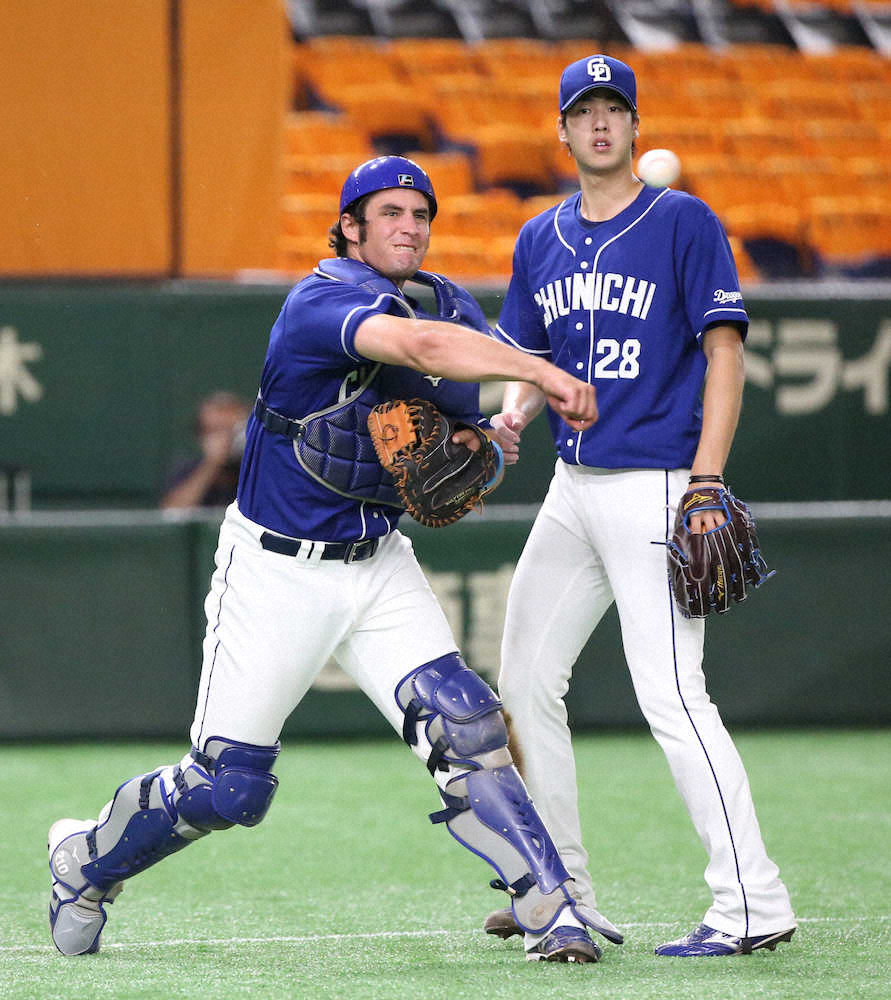マスクをかぶっても初回1死一、二塁で岡本に対する梅津の初球フォークボールがベース手前でワンバウンドしたところを素早く捕球。後逸の心配をなくし、自信を持って変化球を投げ込める安心を与えた。2回1死ではパーラのボテボテのゴロを好フィールディングで一塁へ転送する身のこなしも披露。2軍で必死に覚えた日本語を駆使し、言葉の壁を越えてリードした。
