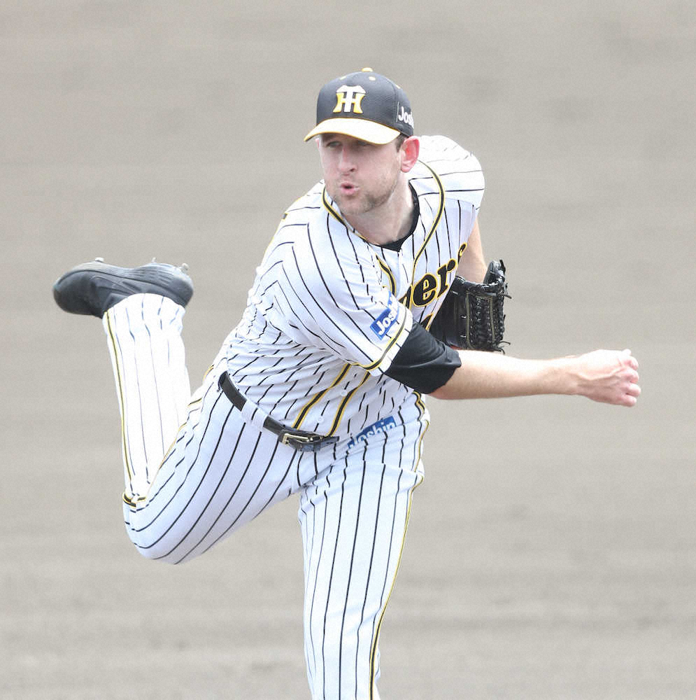 阪神・ガンケル 2軍降格後初登板で5回無失点 視察した矢野監督に昇格アピール