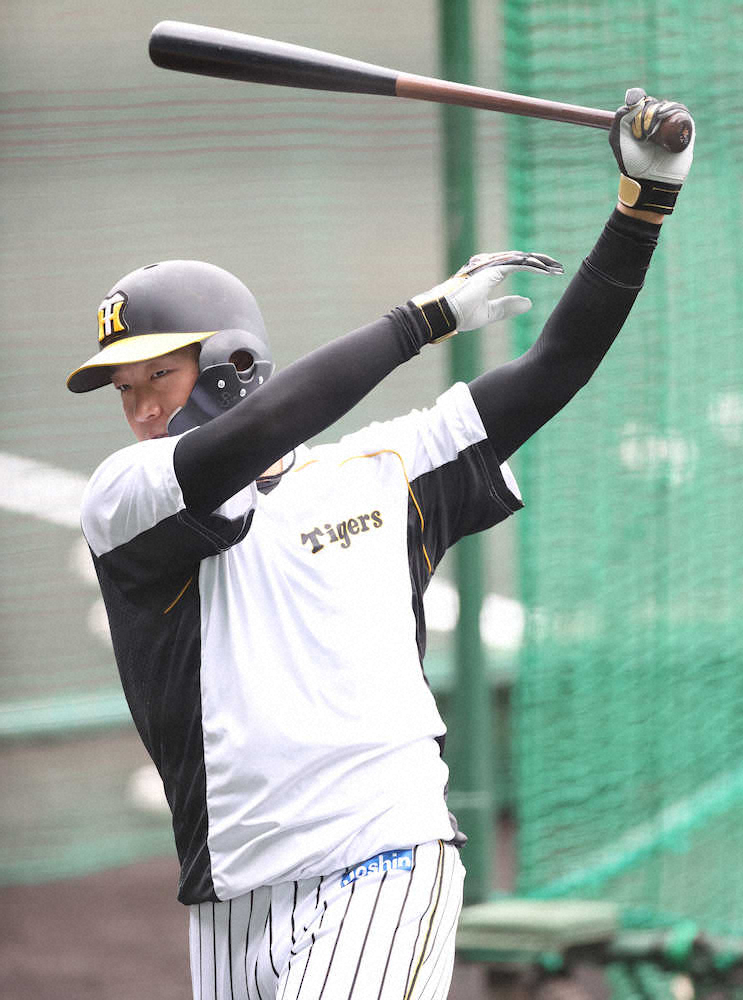 <神・巨(4)>ティー打撃を行う大山(撮影・北條 貴史)