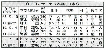 10日は中日・ビシエド、オリックス・ロドリゲス、ソフトバンク・柳田がサヨナラ弾。1日3本のサヨナラ本塁打は史上3度目のレアケースながら、昨年9月4日(ロッテ・田村、ヤクルト・山田哲、DeNA・筒香)から2年連続。フランスアは、この時は山田哲に被弾していて、2年続けて悔しい形で球史に名を残した。