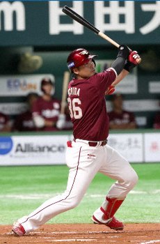 9試合ぶりの一発が勢いをつけ、チームは終盤逆転。貯金を1とした。「1本出ました!どんどん打っていけるようにしっかりやります」。言葉にも力がこもった。(大木 穂高)