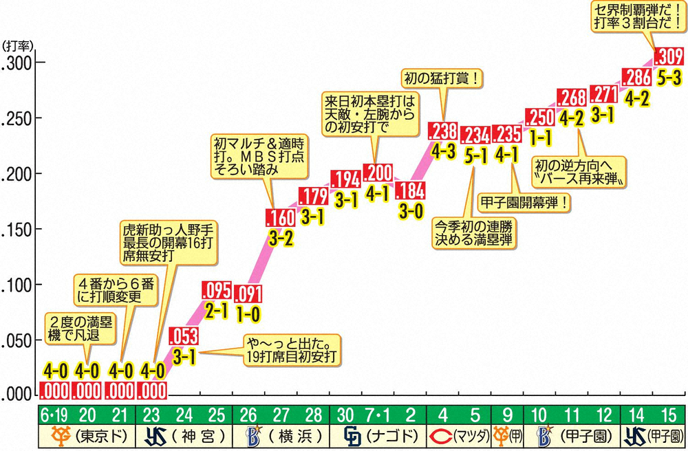 <神・ヤ(5)> 7回1死、右中間へのソロ本塁打を放つボーア (撮影・後藤 大輝) Photo by スポニチ これが「ボーア曲線」だ セ界制覇弾で大台を突破 打率0割からの劇的上昇 ギャラリーで見る この記事のフォト 2020年07月16日の画像一覧 もっと見る 2020年07月16日の画像をもっと見る