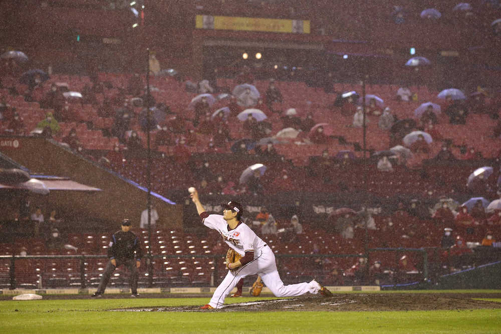楽天・涌井、自己最多タイ開幕4戦4勝 雨に浮かんだ西武・今井との差――