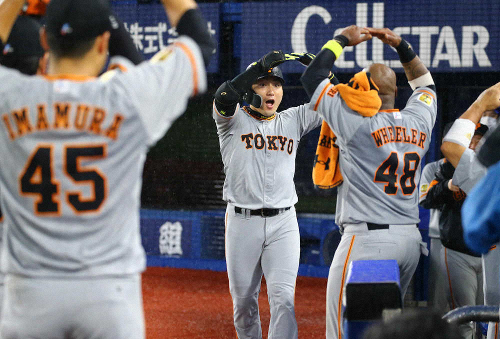 4日の中日戦(東京D)で2本塁打を放って以来の一発で「打ったのはカーブ。3人では終わらせないという気持ちで打席にはいりました。雨も強いですけど、集中して、いいスイングができました」とコメントした。