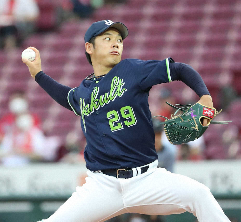 <広・ヤ>ヤクルト先発の小川(撮影・奥 調)
