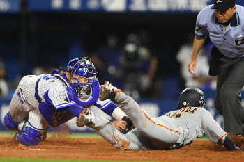 3つ目は「スライディング」。体は三塁ベンチ方向。伸ばした左手の指先だけでベースを触った。「飛んでからもう見えなくなった。自分的には触ったと思った。必死で突っ込みました」。セーフ判定で同点。DeNAがリクエストに出た。