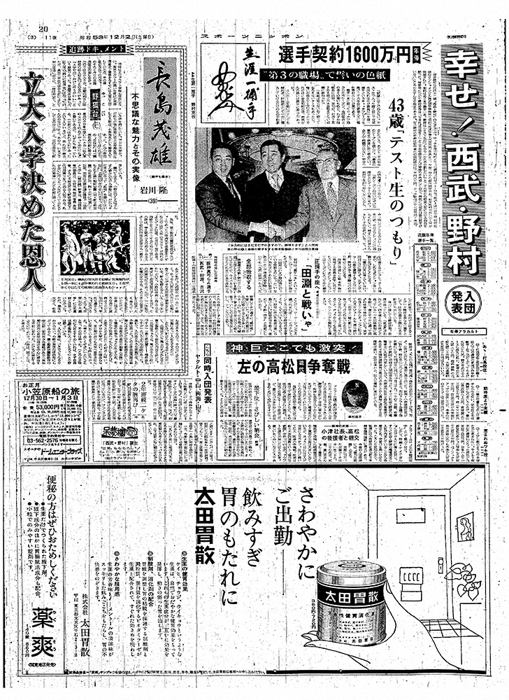 野村さんの西武入団発表を伝えた1978年12月2日付スポニチ東京版