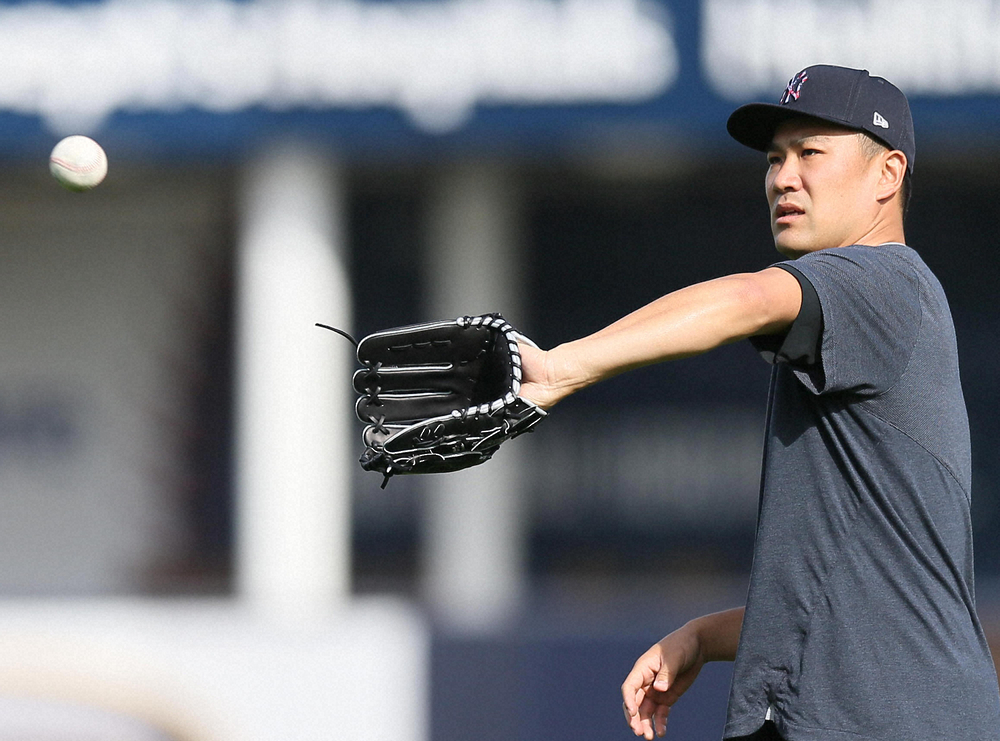 田中は20日、キャッチボールやランニングで調整し、明るい表情を見せていた。