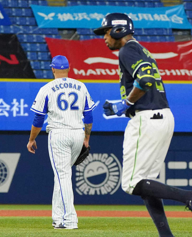 8回からDeNAのマウンドにはエドウィン・エスコバーが登場。無死一塁から、この日「6番・遊撃」で先発していたヤクルトのアルシデス・エスコバーを打席に迎えた。