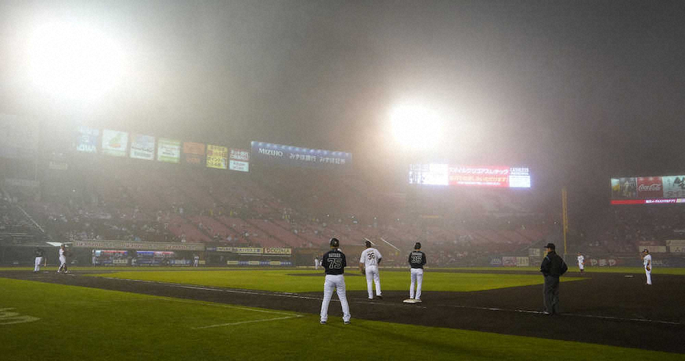 楽天―オリックス戦は、濃霧のため8回途中でコールドゲームが宣言された。