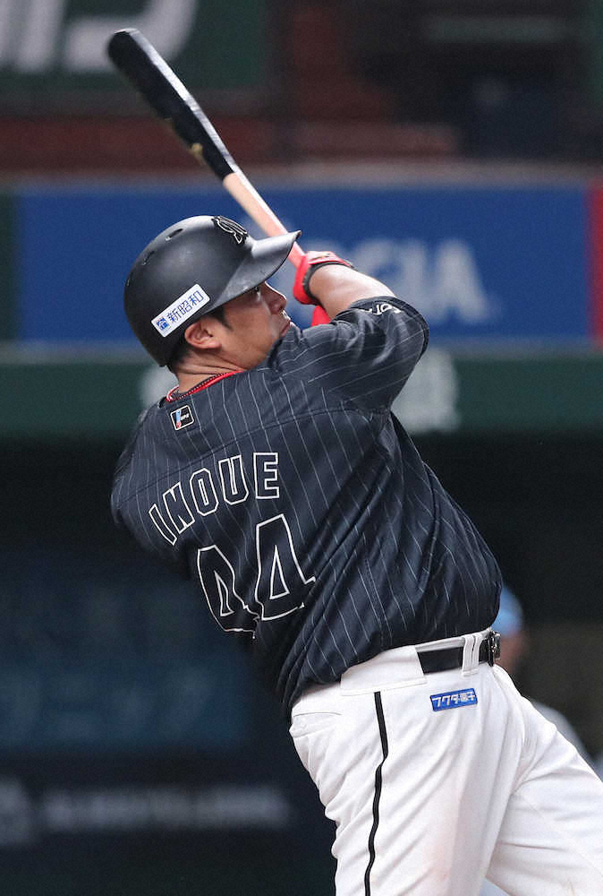 ロッテ・井上が1点リードの6回1死からバックスクリーンへ5号ソロを運んだ。